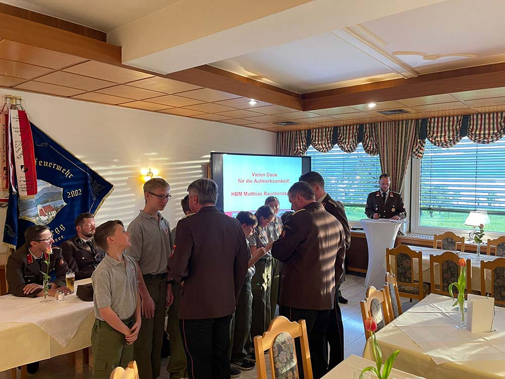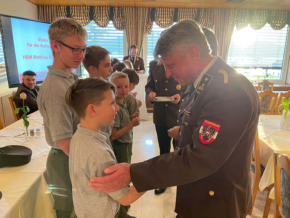 Einen besonderen Dank durften wir für Matthias Rauchenzauner aussprechen der 15 Jahre lang mit Engagement und Ehrgeiz die Jugend der FF betreute und aufbaute. Diese Tätigkeit übergibt er nun an Phillip Perner, der in den letzten Jahren ebenso schon die Jugend mit „Hias“ begleitete.
